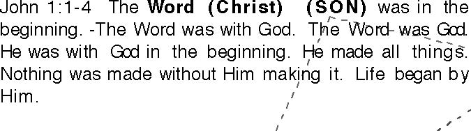 John 1:1-14 The Word (Christ) was in the beginning. -The Word was with God. The Word was God. ' He was with God in the beginning. He made all things. Nothing was made without Him making it. Life began by Him. His Life was the Light for men. 5 The Light shines in the darkness. The darkness has never been able to put out the Light.