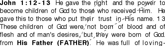 6 There was a man sent from God whose name was John. He came to tell what he knew about the Light so that all men might believe through him. John was not the Light, but he was sent to tell about the Light. 9 This true Light, coming into the world, gives light to every man. He came into the world. The world was made by Him, but it did not know Him. He came to His own, but His own did not receive Him. He gave the right and the power to become children of God to those who received Him. He gave this to those who put their trust in His name. 13 These children of God were not born of blood and of flesh and of man's desires, but they were born of God. Christ became human flesh and lived among us. We saw His shining-greatness. This greatness is given only to a much-loved Son from His Father. He was full of loving-favor and truth.